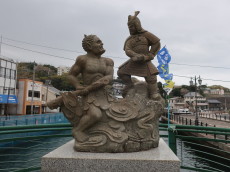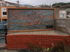 町並景観施設整備事業で設置したという漁師レリーフなど、町の文化の一端にも触れました。