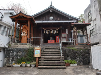 道路から階段をおりて境内へ入る「さがり宮」の住吉神社は、