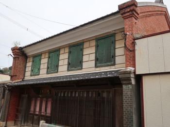 旧松本薬局は1912年(明治45)に建てられた店舗兼住宅で、格子窓の付いた和風デザインの1階、