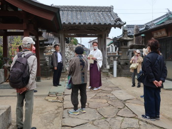 聖母宮80代目の川久保宮司さんから、神社の歴史や現況、西門の修復のことなどのお話を伺いました。