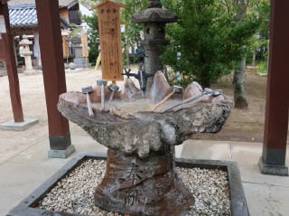 巨大なシャコガイの手水鉢は日本が委任統治を認められていた1940年(昭和15)にミクロネシアのポンペイ島から