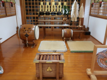 拝殿に上がり、壁に飾られた数々の龍の絵を拝見した後、宮司さんのご厚意で(?)