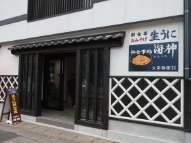 11時半から御食事処「海神(わたつみ)」での昼食には出回り始めたばかりのムラサキウニが供され(夏はアカウニ)、