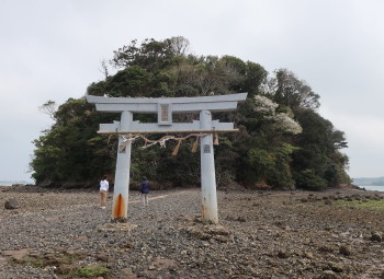 幸いにも干潮にあたりましたので、鳥居まで200mほどの参道を歩き、潮風にあたりながら海景色を楽しみました。