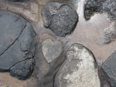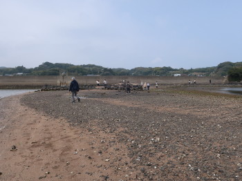 | カキ・巻貝・アオサノリなどを見つけた参道 |