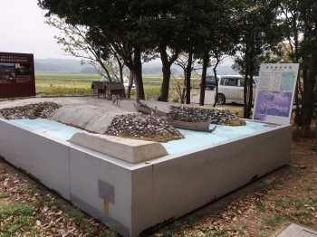 ツアー・バスがトイレ休憩に立ち寄った原の辻ガイダンスの前庭に船着き場跡模型が置かれていました。