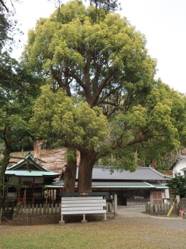 市指定天然記念物のクスノキや夫婦クスノキ、オガタマノキなど樹齢を重ねた大木にも歴史を感じる神社でした。