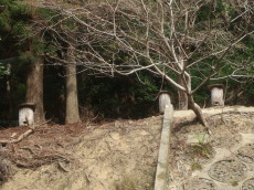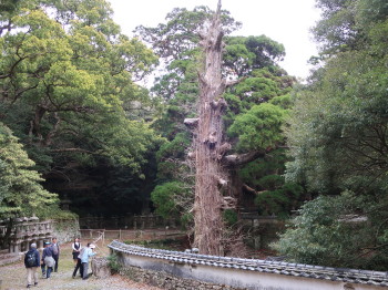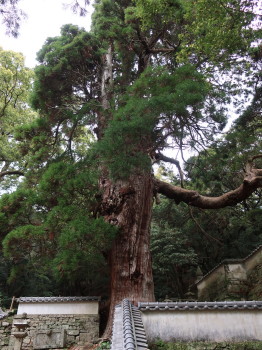 万松院の建立前から生えていた言われる樹齢1200年の3本の大杉が宗家墓所に一層の風格を添えていました。 立ち枯れに見えた1本の大杉には芽出しが見られましたので、復活が期待されます。