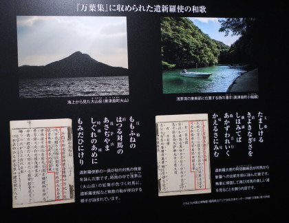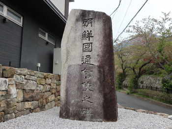 厳原の町でバスを降り、先ず対馬朝鮮通信使歴史館へ行きました。 2017年(平成29)3月に「朝鮮通信使に関する記録」をユネスコ「世界の記録」に登録申請をしたことを契機に、 対馬市のまちづくり団体が「朝鮮通信史によるまちづくり」を提言したことで構想され、 基本計画策定や実施設計を経て整備を行い、2022年(令和3)に開館したのが対馬朝鮮通信使歴史館で、 朝鮮通信使の歴史的な意義とその記録の重要性が高く評価された「朝鮮通信使に関する記録」は 登録申請をした2017年10月にユネスコ「世界の記録」に登録されています。