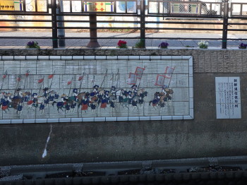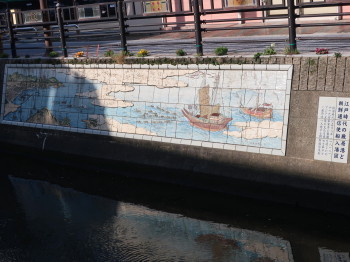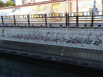 朝鮮通信使絵巻のタイル壁画で飾られた護岸壁がありました。