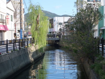 八幡宮神社を出て、市街の真ん中を流れる厳原本川沿いの川端通り(国道382号線)まで足を延ばすと、