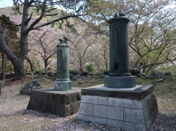 左:650年祭改築記念碑 右:元寇700年平和之碑 |