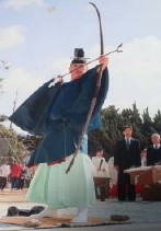 海の彼方に蒙古軍を迎え撃つ弓矢をかまえる「鳴弦(めいげん)の儀」や、