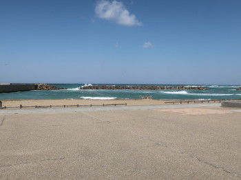穏やかな港や海浜公園に打ち寄せる高波の海景色もしばし楽しみました。