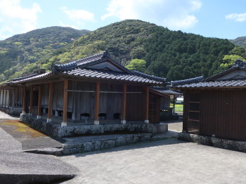 島内に産する板石で葺いた石屋根倉庫は食糧や日常生活用品を保管するためのもので、
