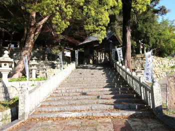 二社併用の?鳥居の先、まっすぐな石段は宇努刀(うのと)神社、斜めの石段は八幡宮神社へ通じていましたので、