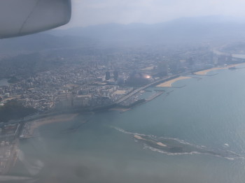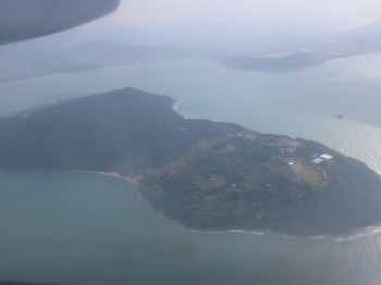 旅の終わりに浅茅湾上空からの景色を楽しみ、満足度増幅の帰路となりました。