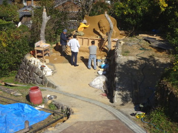 アーティスト松木由子氏による完成間近かの砂像など、墓前祭の準備が進む様子を地元のTV局が取材に来ていました。