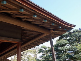 木連格子 杮葺き(こけらぶき)屋根の美しい軒天