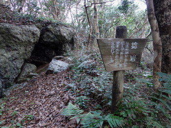 登り始めて、まもなく、空海が一夜で建立したと伝えられる岩屋がありました。