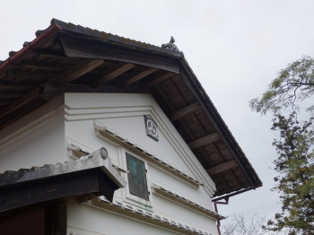 土蔵の鬼瓦に三階菱、破風に三菱のスリーダイヤが見られました。