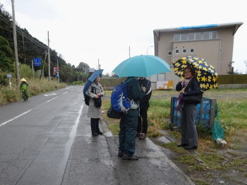 携帯で連絡を取り合って、雨天で足元が悪いため中止とし、そのまま安芸駅までいくことになりました。