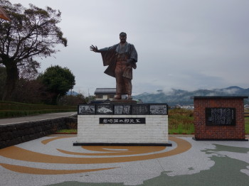 岩崎彌太郎の生誕150周年を記念して昭和61年(1986)に彫刻家の浜田浩造によって造られた3.3mの銅像は、
