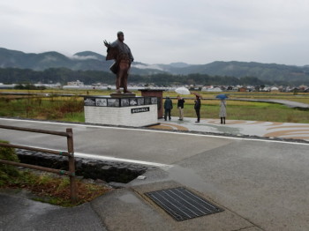 高知駅前に建つ幕末の志士たちの巨像の前で、東部遠足の記念写真を撮った後、
