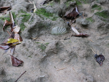 砂や泥の中で貝殻などの石灰分が溶けて固まったコンクリーション(別称:ノジュール)が見られ、