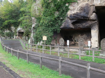 参道の東側に200mほど続く洞窟遺跡群があり、司馬遼太郎は(「街道をゆく 仙台・石巻」)
