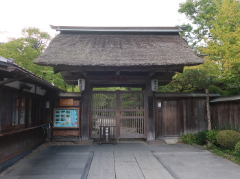 茅葺・寄棟造りの屋根、表通りに面して出格子と蔀戸(しとみど)、天井板は貼らない、敷地出入口には冠木門など、