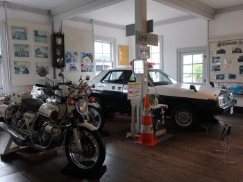 警察資料館 登米の最後に立ち寄った警察資料館(旧登米警察署庁舎)は、明治20年(1887)に佐沼警察署登米分署から 登米警察署に昇格したことに伴って、明治22年(1889)に建設された新庁舎で、 設計監督は旧登米高等尋常小学校(現:教育資料館)と同じく山添喜三郎によるものです。 昭和63年(1988)に県指定重要文化財に指定されています。 留置場 昭和43年(1968)に登米警察署新庁舎の落成に伴い警察署庁舎としての役割を終えた後、商工会が使用、 昭和61年(1986)に商工会が移転し、開始された復元工事工事途中に建設当時の留置場の基礎が発見され、 本庁舎と併せて全国でも珍しい明治の留置場が付設され、 署長室、取調室や試乗できるパトカーなど日本唯一の警察関係資料を展示した「警察資料館」は 昭和62年(1987)に公開、昭和63年(1988)に県指定重要文化財に指定されています。