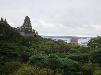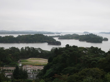 3日目の朝は夜半からの雨が残り、松島湾や松島市街地が墨絵のような風情を見せていました。