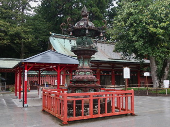 銅と鉄が複合された珍しい燈籠です。 (塩竃市指定文化財)