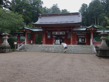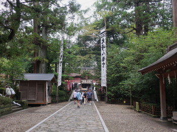 私達は駐車場から穏やかな坂道の東参道を上って、志波彦神社の鳥居から神社境内に入りました。