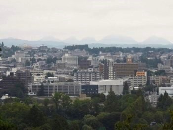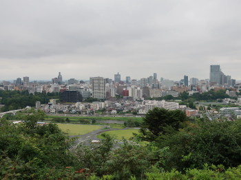 仙台城本丸跡を歩き、政宗公騎馬像を見た後、標高130mの城址から街の景観を一望しました。