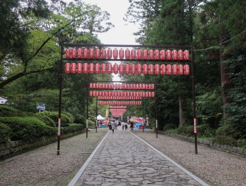 訪れた9月14日は毎年9月に行われる例大祭の日にあたり、参道は御神灯や奉納された提灯で飾り立てられ、