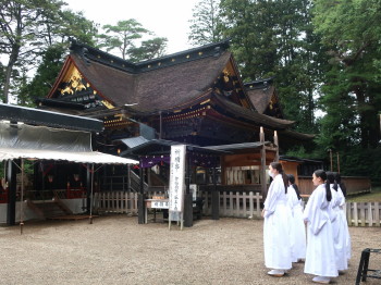 ちょうど献饌式が行われている最中で、社殿の全容を見ることが出来なかったのは残念ですが、