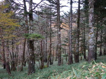 ミヤコザサが繁茂して、これらを主食とするニホンジカの生息数が増加し、