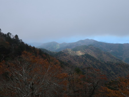少し撮影位置を変えただけの似通った写真ですが、「重畳する」台高山脈の様子をご覧ください。