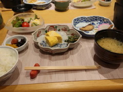 昨夕と同じレストランでの和朝食は日本の旅館の平均的なラインナップでしたが、