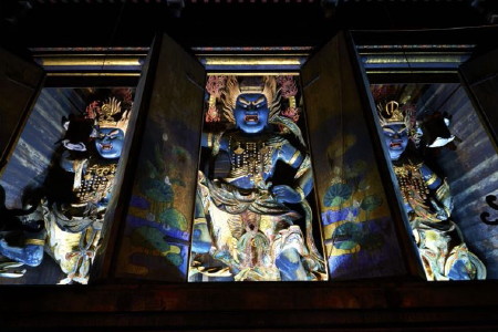 鮮やかな青い色が慈悲と寛容を表すという金剛蔵王権現(こんごうざおうごんげん)の