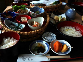 二王門や銅の鳥居を下った先の集合場所、「季節料理 初音」に11時40分頃、到着しました。