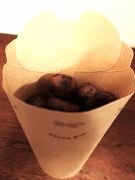 期待通り開店していて、きつねのお面をかぶった店主から「1cup 1000yen」の焼き栗を購入しました。