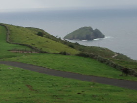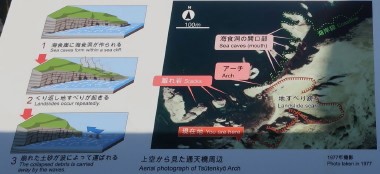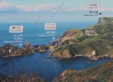 この日は地図左の摩天崖~通天橋~明暗の岩屋など国賀海岸を巡る定期観光船が高波の為に欠航になってしまい、