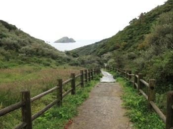 遊歩道の最後の部分を歩き、国賀海岸まで下りることができて、しかもすっきりと晴れた青い海に出会え、