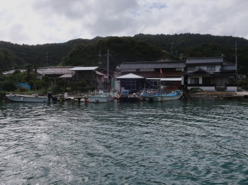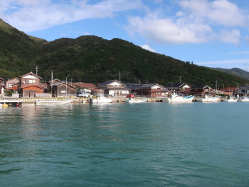 来居港から30分、12時過ぎに別府港へ戻り、ジャンボタクシーで浦郷湾沿いの食事処「あすか」へ行き、