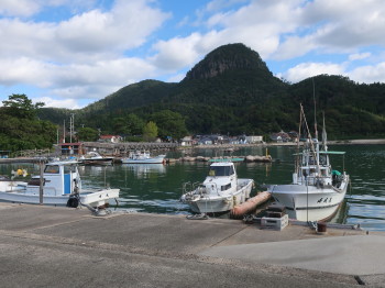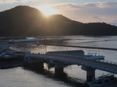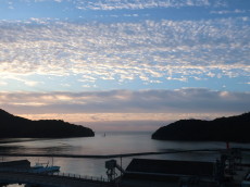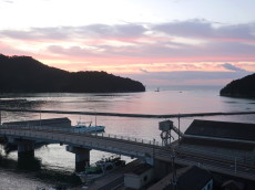 夜明けと共に色彩を変えていく西郷港を眺めながら、帰り支度をしました。