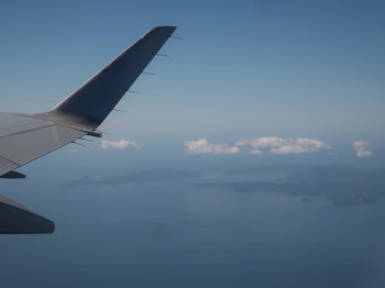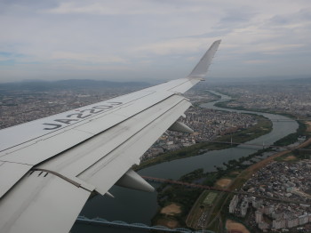中国山脈、大阪の街を下に見て、12時半に伊丹空港へ着陸、ここで大阪在住のO夫妻とお別れしました。