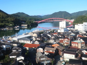 9時25分に迎えのマイクロバスに乗って、最後の観光、屋那の松原・舟小屋群のある都万(つま)地区へ向かいました。